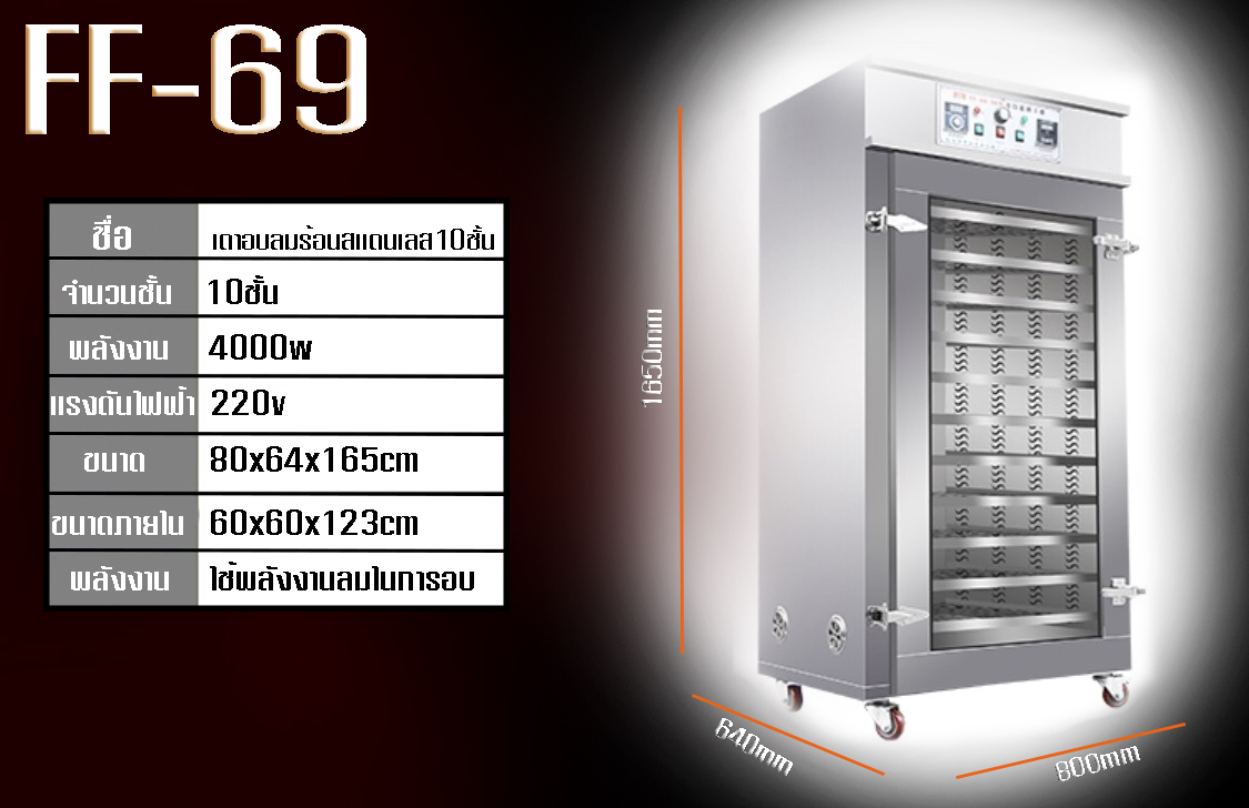เตาอบลมร้อน สแตนเลส 10ชั้น รุ่น FF-69