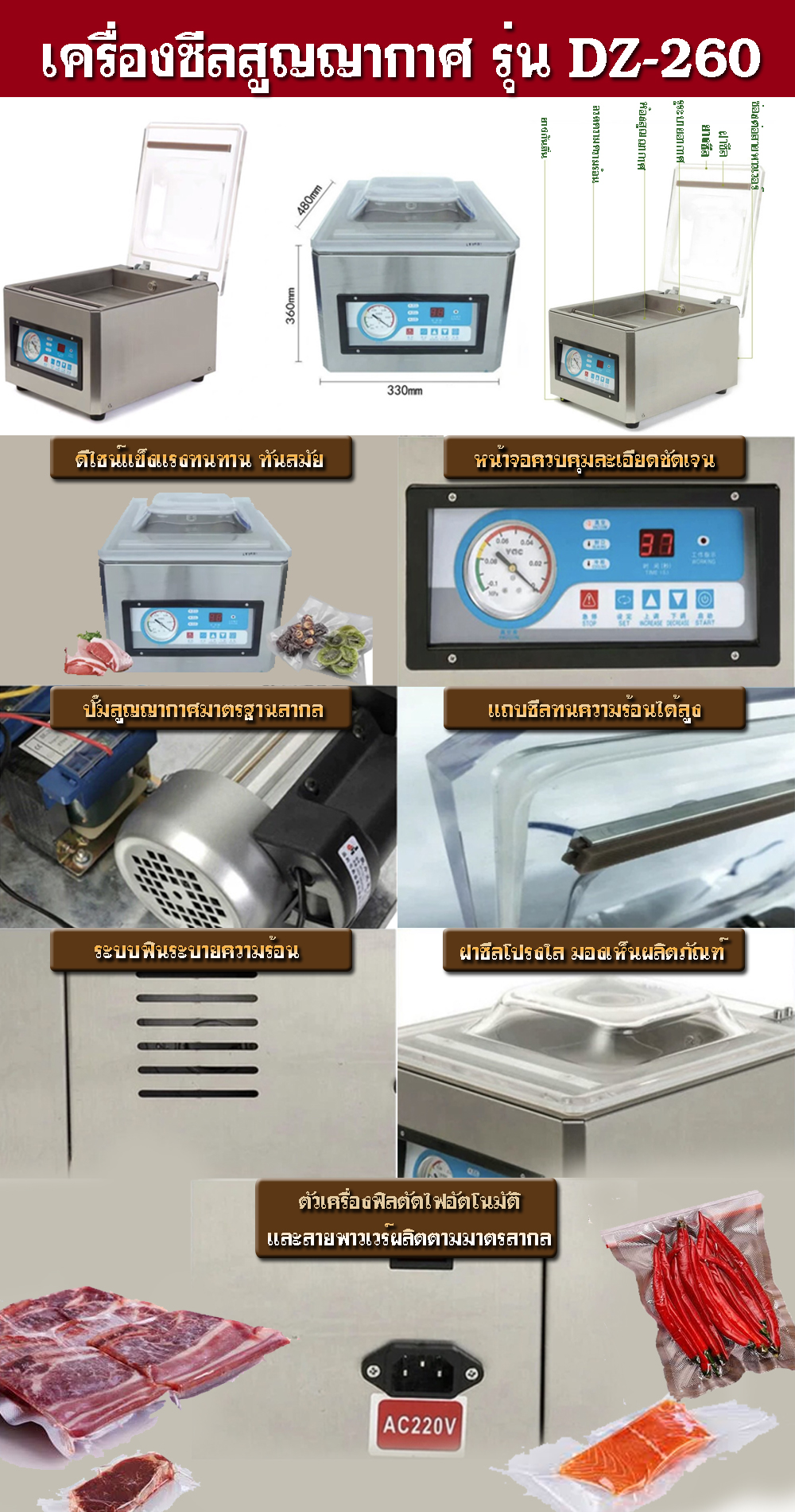 เครื่องซีลสูญญากาศ เครื่องแพคสุญญากาศ DZ-260  (แอดLINE/สอบถาม คลิก !!)
