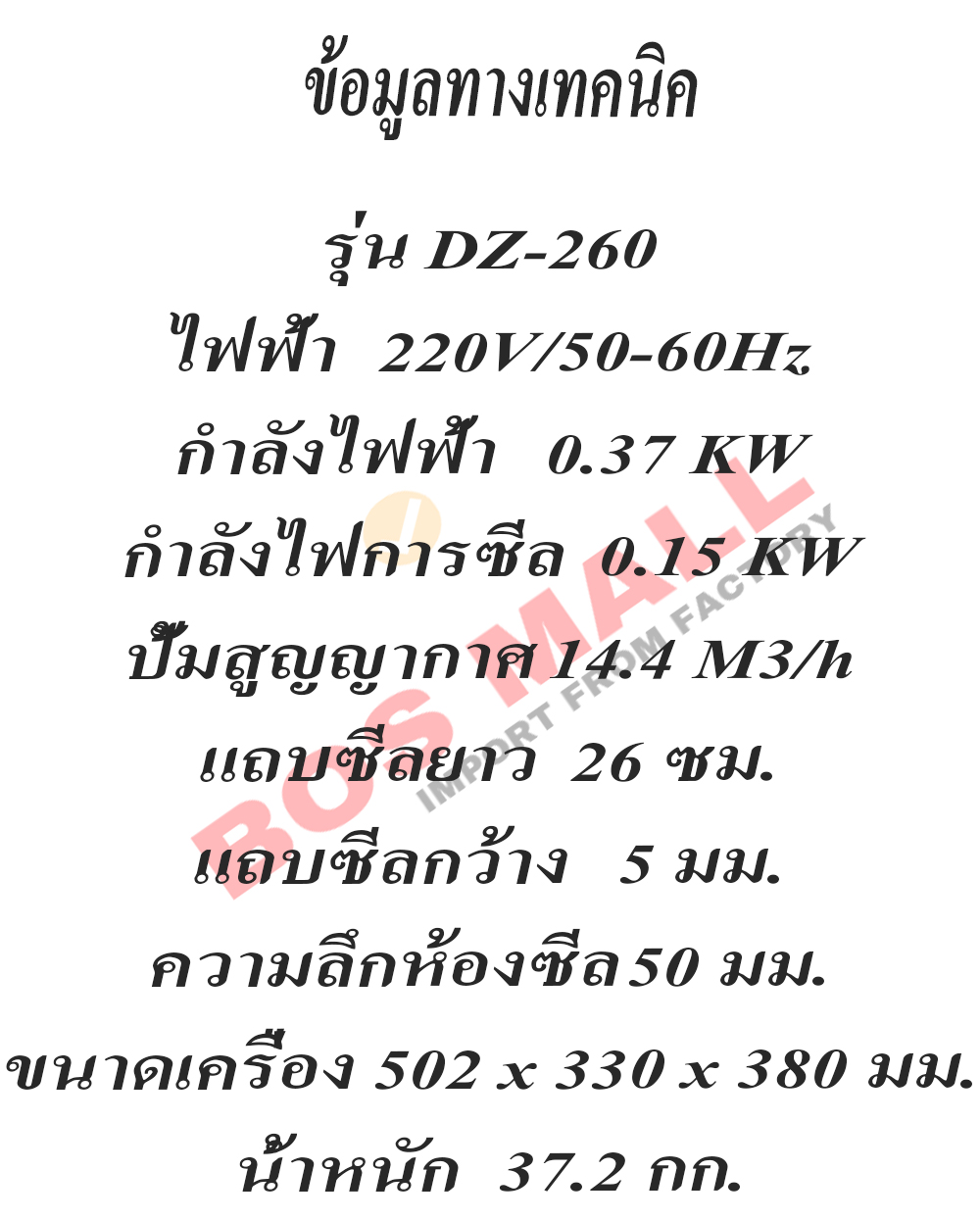 เครื่องซีลสูญญากาศ เครื่องแพคสุญญากาศ DZ-260