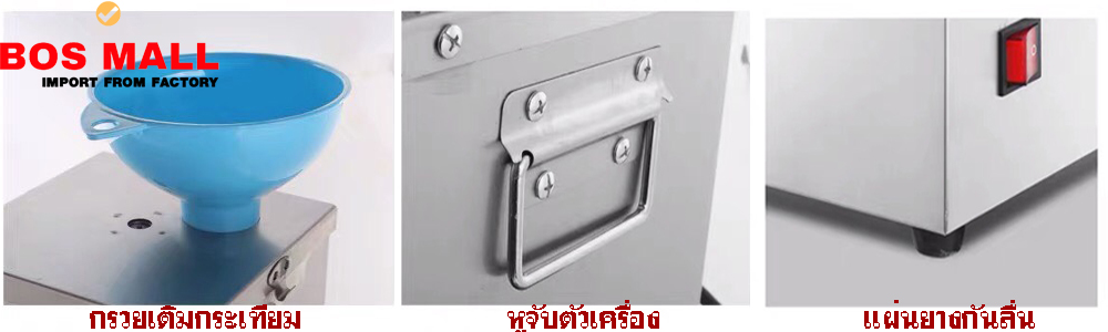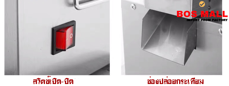 สวิตช์ เปิดปิดเครื่อง ช่องปล่องกระเทียมที่ทำการแกะเปลือก เรียบร้อย