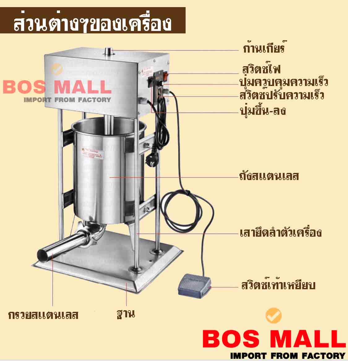 เครื่องอัดไส้กรอก ขนาด 25 ลิตร ราคา 26,800 บาท จัดส่งฟรี