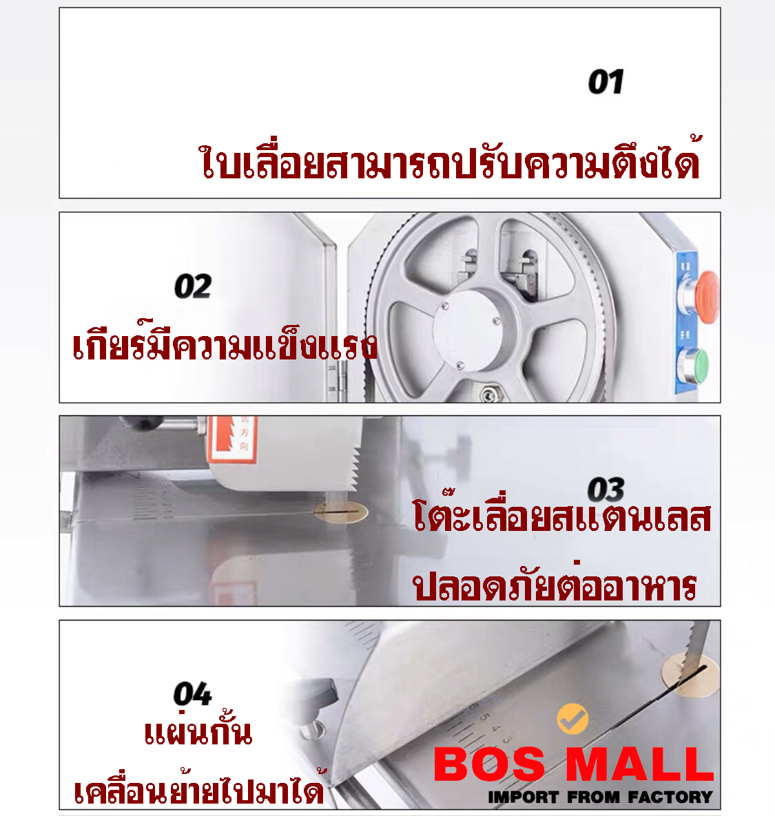 โครงสร้างผลิตจากสแตนเลส เกรด 304 ใช้สำหรับตัดกระดูก หรือ เนื้อแช่แข็งสัดส่วนเช่น กระดูกหมู กระดูกเนื้อ ตัดกระดูกเพื่อ นำไขกระดูกมาทำซุป หรือสเต็ก ทีโบน พร๊อกช้อบ กระดูกเล้ง เป็นต้น